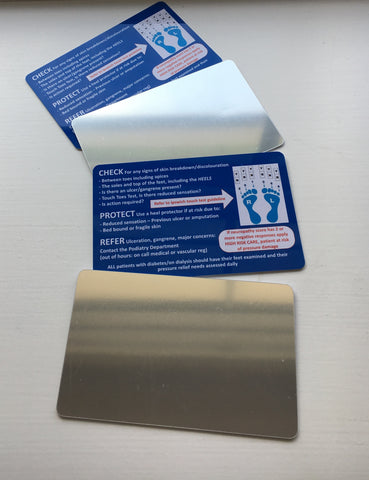 This Shatterproof Mirror Card has been specifically designed to help with Diabetic Foot Checks. Made in collaboration with Guys & St. Thomas NHS Foundation Trust and using the Check Protect Refer acronym devised by Duncan Stang, this card is ideally suited for all health care workers to use.